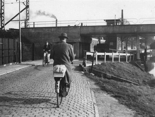 Na de verhoging van het spoor kon het verkeer onder de spoorbaan doorrijden.