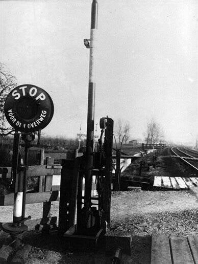 Hoogstwaarschijnlijk de overweg waar de man met de kruiwagen werd aangereden.