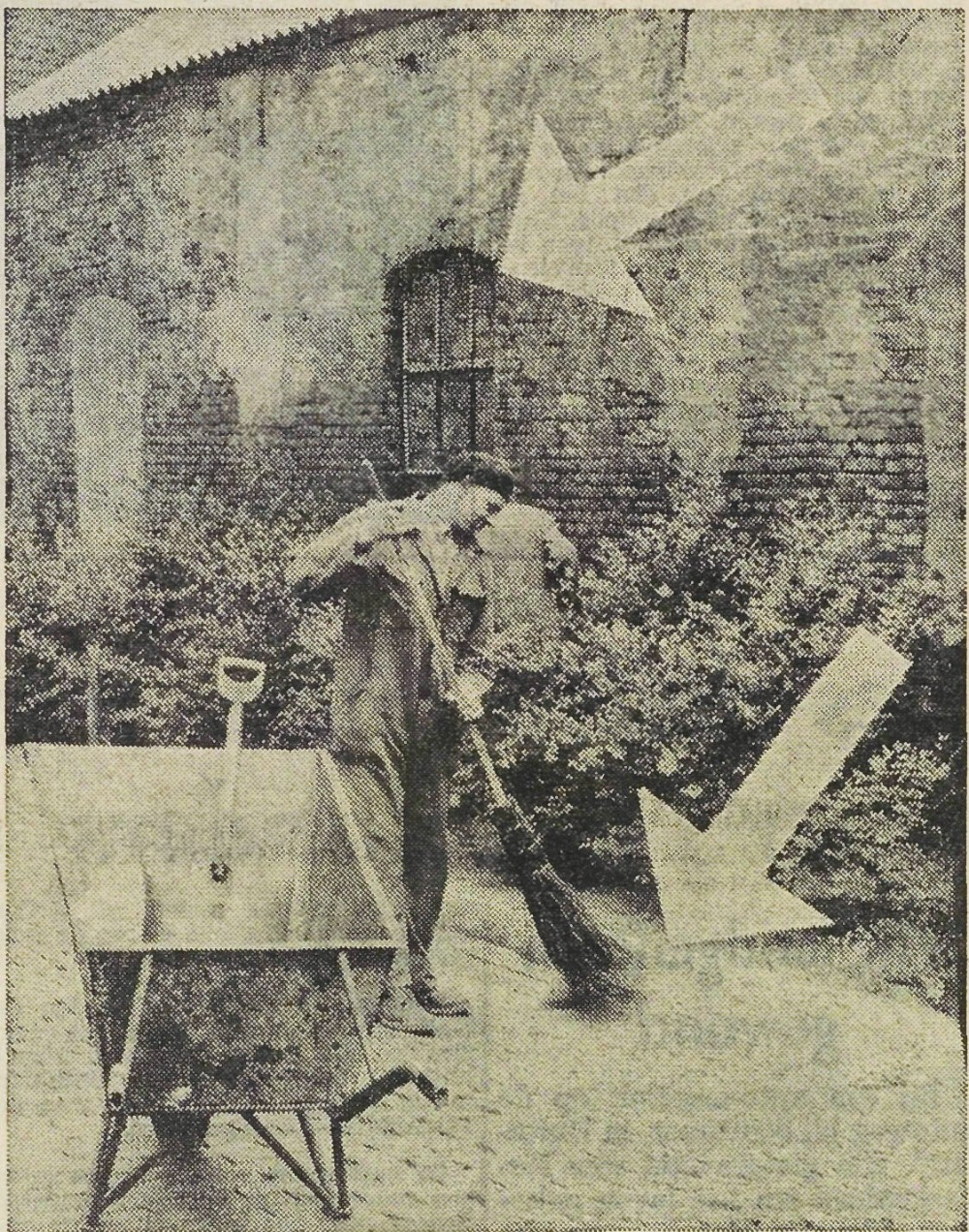 Ondanks de fabrieksvakantie, aldus de bedrijfsleiding, gaat de aanvoer door. „Wij kunnen de tienduizenden slagers in stad en land niet met hun beenderen laten zitten". Dit betekent dus een extra grote opslag. Maar dat dit het resultaat zou worden, was niet te voorzien. De opslag heeft plaats in een schuur, waar weliswaar de lucht wordt afgezogen, maar de maden hebben door de kieren in de opslagruimte buiten licht zien branden en zijn toen „aan de wandel" gegaan. Als remedie daartegen zijn er binnen en buiten nu veel verdelgingsmiddelen gespoten. Verder zijn de kieren dichtgemetseld en waarschijnlijk zullen we om de maden „thuis" te houden 's avonds licht laten branden in de schuur.